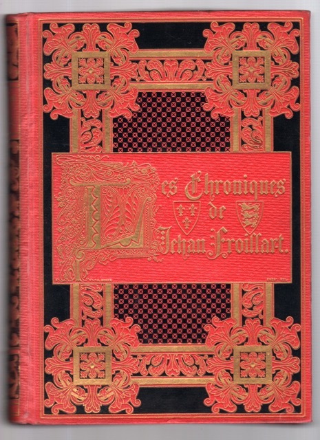 1881 Paris, Hachette, 1881. Fort volume in-quarto demi-chagrin rouge a coins , dos cinq nerfs, titre doré, tête dorée ÉDITION ABRÉGÉE avec texte rapproché du français moderne de ces chroniques médiévales écrites au XIVe siècle en moyen français par Jean Froissart et qui constituent un récit en prose de la GUERRE DE CENT ANS. Ouvrage contenant 11 PLANCHES en chromolithographie, 12 lettres et titres imprimés en couleur, 2 CARTES, 33 grandes compositions tirées en noir et 252 gravures d'après les monuments et les manuscrits de l'époque. BEL EXEMPLAIRE,