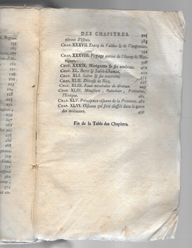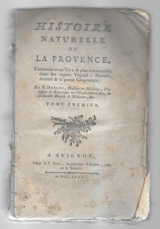 Avignon et se vend à Marseille. Jean Mossy. 1786. 1 volume in-8 (128 x 205 mm) dos lisse basane fauve, filets dorés; pièce de titre maroquin rouge, plats mouchetés (reliure XIXe), titre, II, 373 pages. Tome III seul. Coupures franches dans la partie inférieure des 2 premières feuilles habilement réparées, ornements du dos en partie effacés, bon exemplaire exempt de rousseurs. Ce tome est essentiellement consacré aux poissons et coquillages de la Méditerranée, aux diocèses de Marseille, de Toulon et de Fréjus. Très rare.