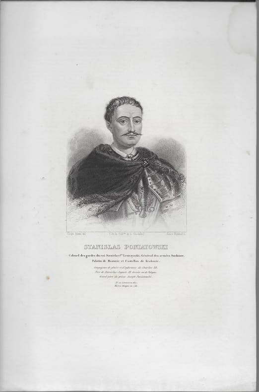 1677 - 1762. Colonel des gardes du roi Stanislas 1er; Général des armées suedoises; Palatin de Mazovie et Castellan de Krakovie. En feuille. Mouillure en marges. Bon XIXè 29 x 20 cm