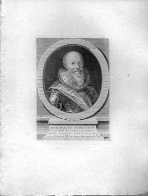 Maximilien de Béthune, duc de Sully, né à Rosny-sur-Seine le 13 décembre 1559 et mort à Villebon le 22 décembre 1641, pair de France, maréchal de France, prince souverain d'Henrichemont et de Boisbelle, baron puis marquis de Rosny, marquis de Nogent-le-Rotrou, comte de Muret et de Villebon, vicomte de Meaux, est un militaire protestant et un compagnon d'armes du roi Henri IV de France dont il devint l'un des principaux conseillers. Merci de nous contacter à l'avance si vous souhaitez consulter une référence au sein de notre librairie.