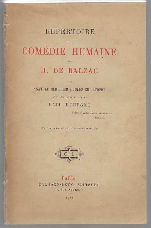 Extraordinaire documentation pour bien suivre les nombreux personnages de Balzac … Dos encollé, brochage sain mais fragile. Broché Bon Paris Calmann-Lévy 1925 1 fort volume in-8°