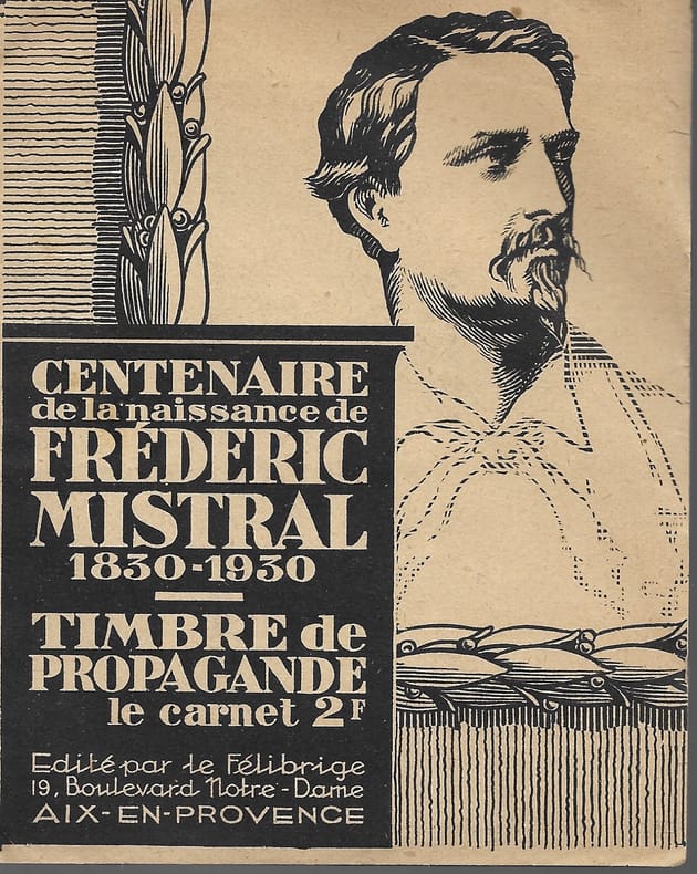 Carnet de 17 timbres (sur 18 ?) édités à l'occasion du centenaire de la naissance de Mistral. Édité par le Félibrige d'Aix-en-Provence. En feuilles Très bon Aix-en-Provence Le Félibrige 1930 en feuille