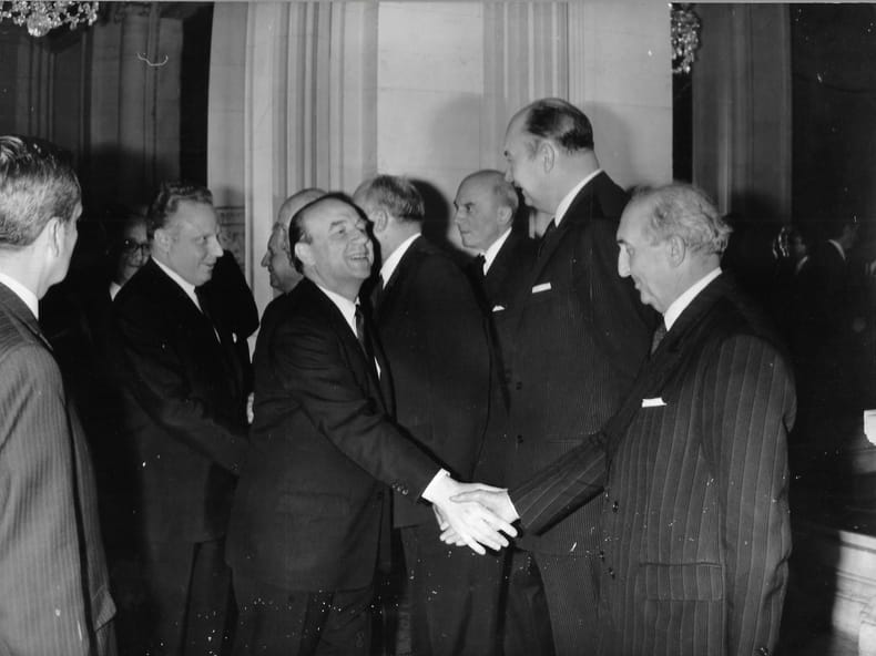 Congrès des maires de France. Mai 1971. Monsieur Marcellin, Ministre de l'Intérieur et Monsieur Waldeck Lhuillier, maire de Gennevilliers. En feuille Très bon Paris 1971 24 x 18 cm