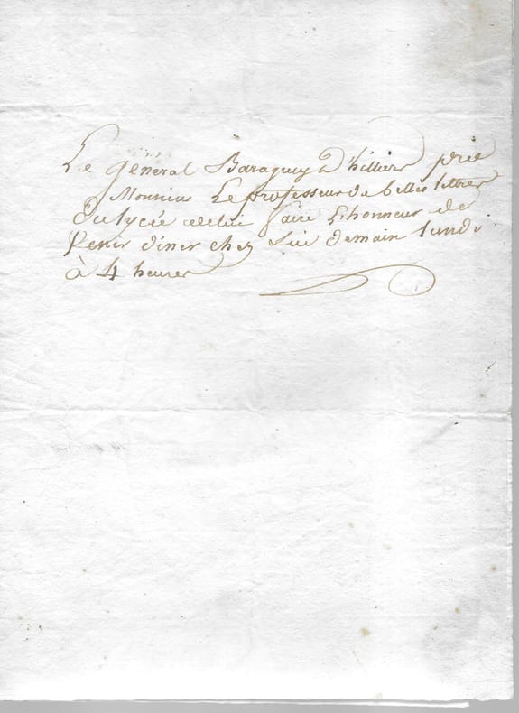 Billet autographe du Général Baraguey d'Hilliers alors à Udine (1797 ?) En feuille Très bon Udine 1797 1 volume in-folio