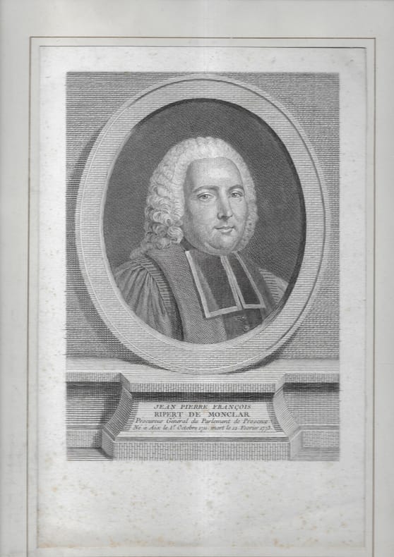 Procureur Général du Parlement de Provence, né à Aix le 1er octobre 1711, mort le 12 février 1773. en feuille Moyen XVIIIè 29 x 20,5