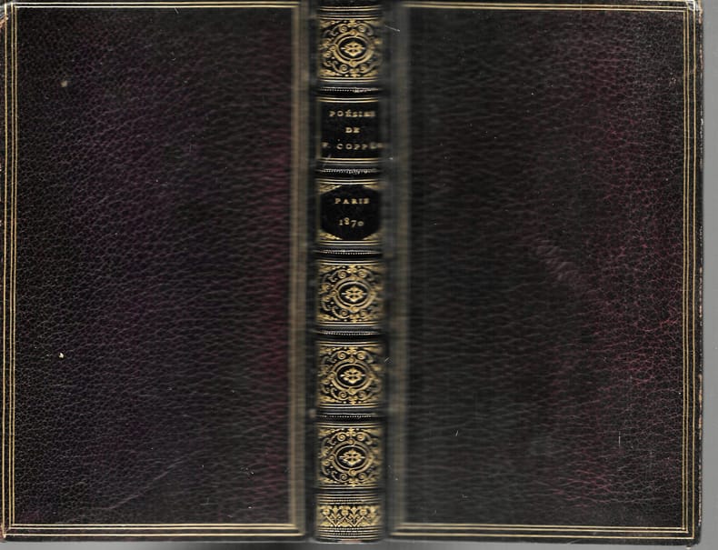 Le volume broché (tome III) est dédicacé par François Coppée à "Madame Emilie Broisat, souvenir de son sympathiquement dévoué, François Coppée". Belle série reliée de 4 volumes à laquelle on joint un exemplaire broché (débroché) dédicacé par François Coppée à l'actrice de la Comédie Française Emilie Broisat. Prix du lot, non séparable.