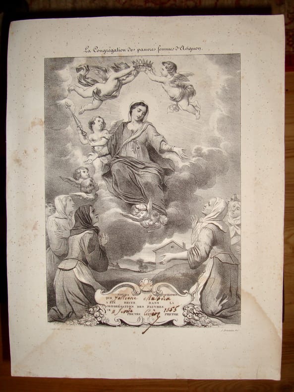 Attestation délivrée en 1855, signée par le curé. en feuille Bon Avignon Motte 29 x 40,5 cm