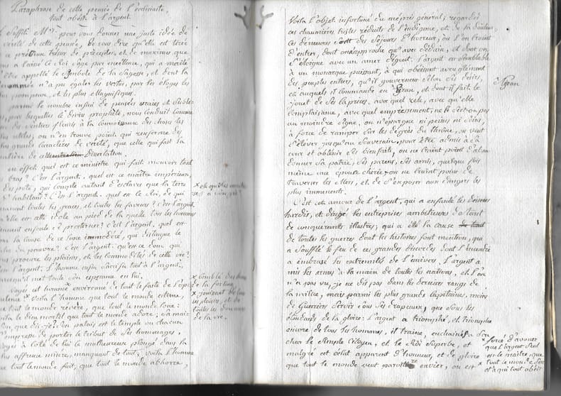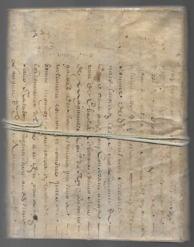 , , 1659-1670. Manuscrit in-4 (20 x 27 cm) à l’encre brune de 582 pp. chiffrées 593, à 40 lignes par page, vélin souple à rabat, dos lisse muet, super-libris manuscrit "O.D. Mottet" sur la tranche de tête, traces de lacet (reliure de l’époque).
