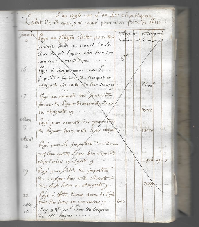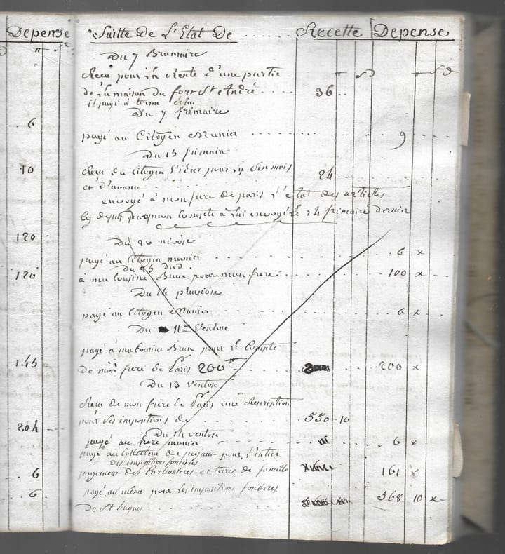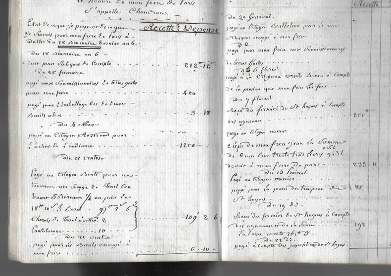 Intéressant document manuscrit très lisible. Dans une première partie se trouve un Recueil de paraphrases et autres petits discours commencé le premier avril 1784, 30 pages. Puis vient les comptes de ce que l'auteur de ce livre a payé à son frère à Paris; cela débute l'an 1796 ou l'an 4è républiquain (sic). Le document concerne la région d'Avignon : sont cités Roquemaure, Pujaut, L'Isle sur la Sorgue, Tavel. 18 pages. Suivent de nombreuses pages vierges. Plein parchemin palimpseste Très bon 1 volume in-8°