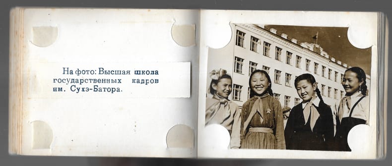 Petit album photographique montrant la capitale de la Mongolie à l'époque de l'Union Soviétique. Chaque photo est légendée au dos en russe. 18 photos. Broché Très bon 1 volume in-8°