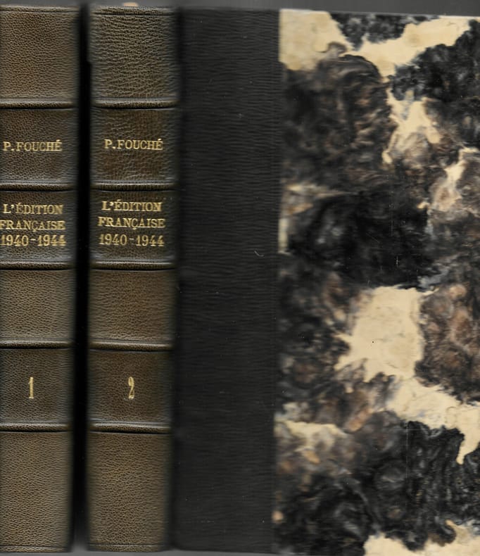 Paris, Bibliothèque de littérature française contemporaine de l'Université Paris 7, coll. « L’édition contemporaine, 3 & 4 » 1987 2 volumes. In-8 23,5 x 18 cm. Brochés, couvertures ivoires, titre en noir & rouge sur les premiers plats, 453-447 pp., notes en bas de page, XX annexes, état civil et activité pendant l’occupation des principales personnes citées dans cette étude, bibliographie, index général, tables des hors-texte, des fac-similés, table.