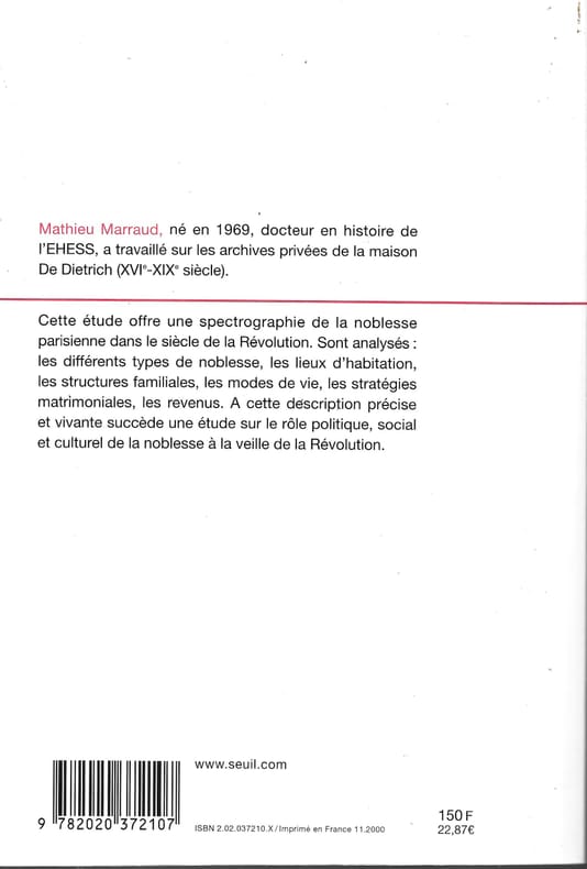 Seuil 14 x 20,5 Paris 2000 In-8, broché, 572 p. Sources et bibliographie, index. Préface de Guy Chaussinand-Nogaret. Collection "L'univers historique". Exemplaire à l'état quasi neuf.(Home24)