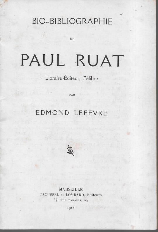Tacussel et Lombard 1918 31 pages Marseille. in-12. 1918. agrafé. 31 pages. Avec un envoi qui n'est pas de l'auteur et un portrait en frontispice