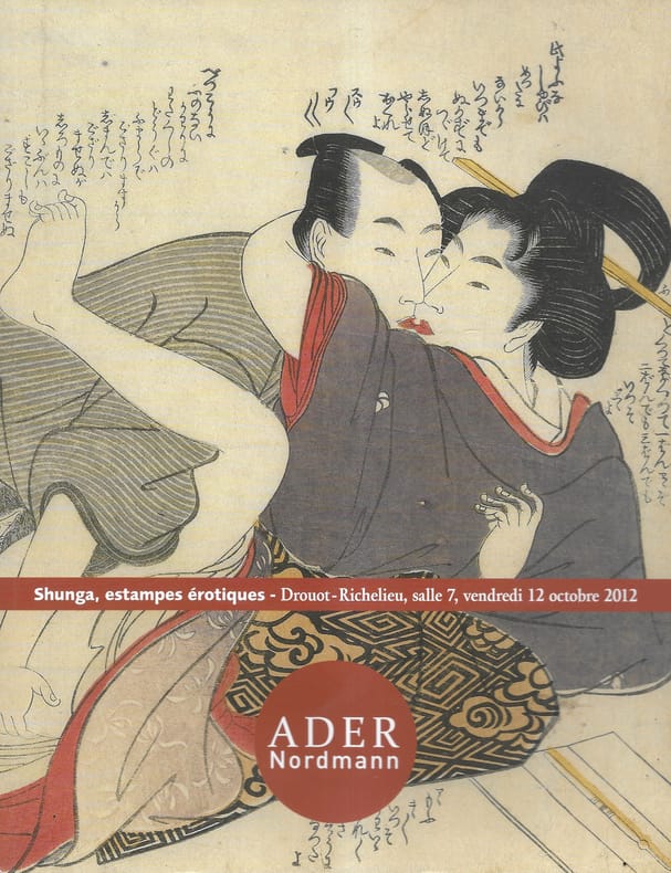 Ensemble de 10 estampes érotiques en noir au trait dans l'esprit des Shunga japonais. Le titre du cartouche n'a pas été traduit. Nous trouvons, collé dans la doublure de la couverture, une étiquette imprimée en français, portant cette inscription : "Cet Album, édité aux dépens des "Amis de l'Art Nippon", a été tiré à 10 exemplaires enluminés, numérotés de 1 à 10 ; 190 exemplaires sur Japon nacré, numérotés de 11 à 200 ; 12 exemplaires de collaborateurs, numérotés de I à XII. Exemplaire 13". Malgré un tirage relativement conséquent, nous n'avons strictement rien trouvé concernant cet album, ni sur les "Amis de l'Art Nippon" ; ni dans les principales bibliographies, ni sur le worldcat, ni sur le net. Nous pensons donc que le tirage n'a pas été totalement imprimé. En tout cas, ce recueil ne manque pas de charme !