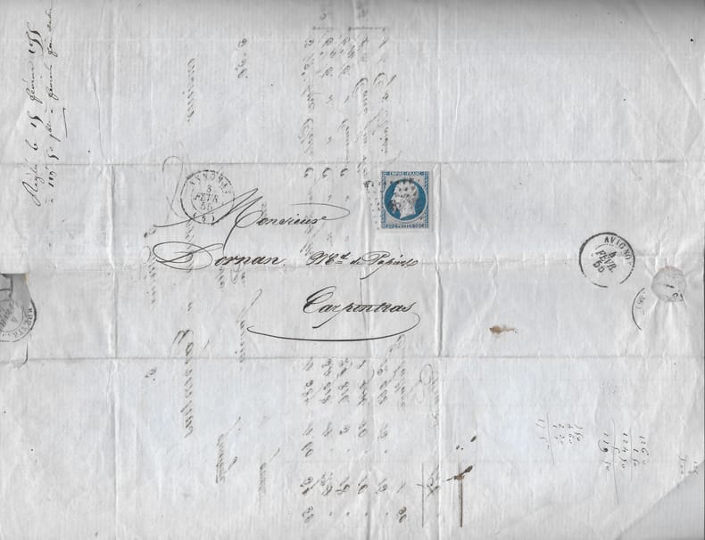 Facture des manufactures de papier Johannot à Annonay. Facture adressée à un papetier de Carpentras. Timbre Empire 20c bleu. en feuille bon Annonay 1855