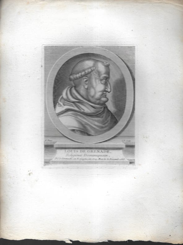Louis de Grenade (Grenade, 1504 - Lisbonne, 1588) était un dominicain espagnol, écrivain et prédicateur catholique. l se fait très vite remarquer par ses talents de prédicateur, et reçoit une formation théologique poussée: après ses études à Grenade, il est envoyé en 1529 au couvent de San Gregorio, à Valladolid. Il y fait la connaissance du frère Melchior Cano, avec lequel il aura plus tard maille à partir, mais également de l'archevêque Carranza, qui fut l'un des premiers à mettre en œuvre la Contre-Réforme en Espagne. Bon état d’occasion
