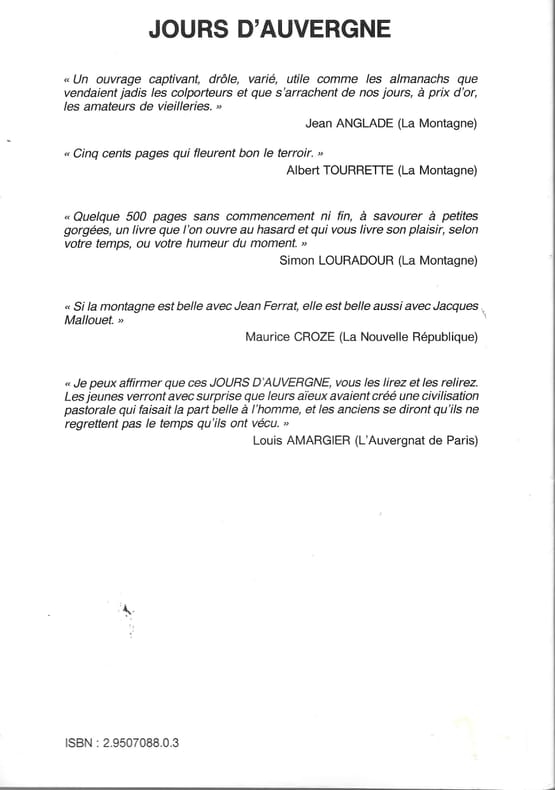 Chez l'auteur. 1975. In-8. Broché. Etat passable, Coins frottés, Dos frotté, Intérieur acceptable. 495 pages. Articles de presse collés en page de garde. Quelques rousseurs. Quelques illustrations en noir et blanc.. . . . Classification Dewey : 908.4459-Régionalisme : Auvergne