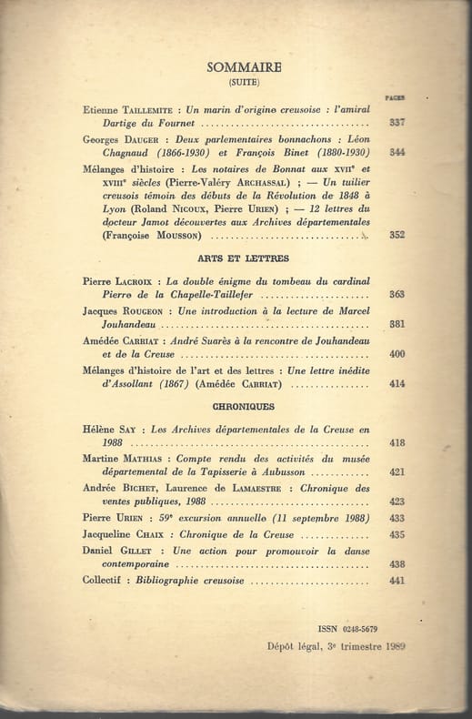 Année 1988. Tome Quarante-troisième, deuxième fascicule. Traces d'humidité sans aucun dégat au début de l'ouvrage. Broché; Non coupé. moyen Guéret Lecante 1989 1 volume in-8°