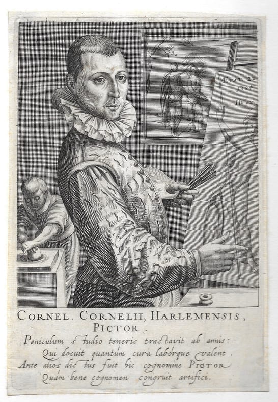 Pictorum aliquot celebrium praecipuae germaniae inferioris effigies. Toutes les planches de cette série porte l’excudit de Hondius, mais certaines ont été gravées par d’autres artistes. 1610 21 x 12