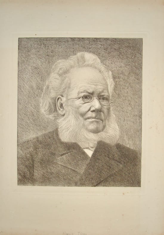 Rarissime photographie originale sur papier albuminé, au format carte de visite, contrecollée sur un carton, représentant Henrik Ibsen. Légende à l'encre indiquant le nom du dramaturge norvégien en marge basse du carton. Timbre à sec de l'éditeur suédois Lostroom & Komp juste en dessous du cliché. Brève étiquette biographique de l'époque encollée au dos. Nous n'avons pu trouver aucun autre exemplaire de ce cliché dans les collections publiques internationales. - Photographies et détails sur www.Edition-Originale.com -