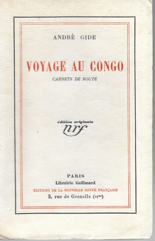 Paris: Gallimard, 1929 in-4, 308 pages, 64 photos h.-t., 4 cartes. Broché, couverture très lég. défr., dos fendillé, comme souvent en raison de l'épaisseur du volume, autrement bon exemplaire. Un des 1571 ex. sur Vélin d'Arches. En 1925 et 1926 André Gide fit un voyage au Cameroun et en Afrique Equatoriale Française ( Gabon, Moyen Congo, Oubangui et Tchad). Il était accompagné par Marc Allégret, qui faisait ses premières armes de photographe et de cinéaste. Dans ce reportage littéraire, Gide décrit les pays, ses habitants et critique violemment le système colonial français. Cette suberbe édition est illustrée de photographies en noir et blanc de Marc Allégret, alliant qualité esthétique et intérêt ethnographique.