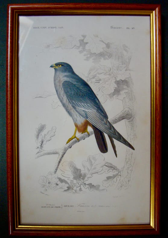 Authentique gravure extraite du Dictionnaire Universel d'Histoire Naturelle par Charles d'Orbigny (Paris, 1849). Faucon Encadré Très bon Paris Dictionnaire Universel d’Histoire Naturelle 1849 26 x 18