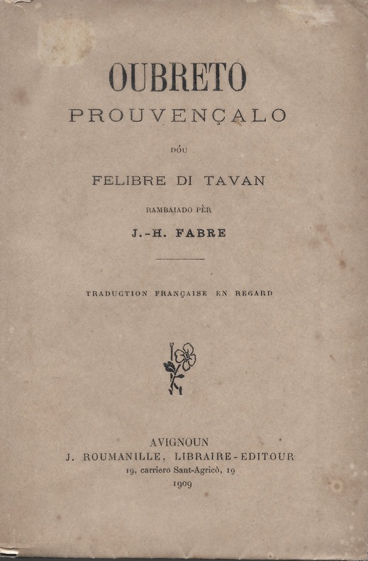 Édition originale avec la traduction française en regard. Broché, petits manques de papier au dos. Bon Avignon Roumanille 1909 1 volume in-8°