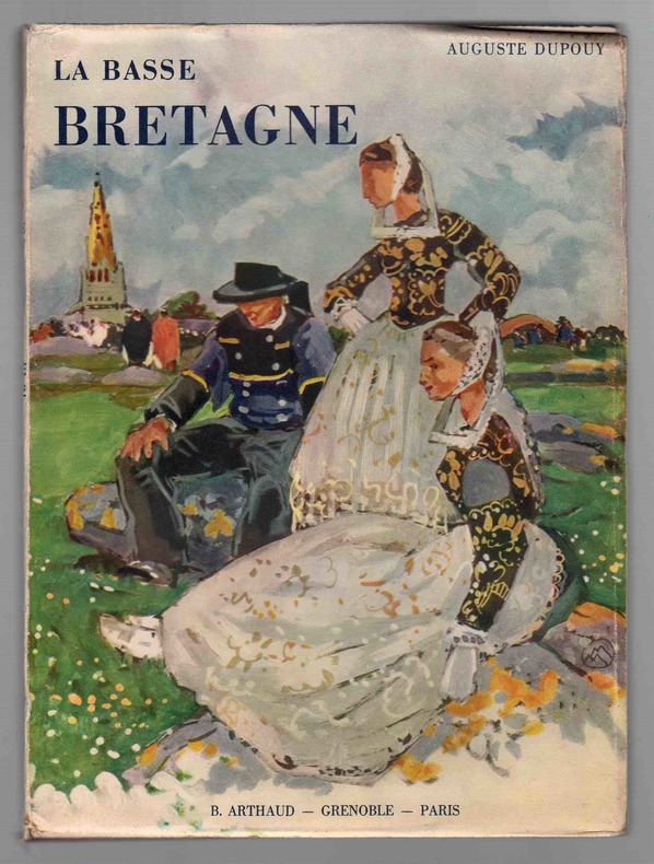 1ère édition de cet ouvrage en 2 volumes où l'écrivain Auguste DUPOUY (1872-1967) décrit les 3 départements de Basse-Bretagne (Finistère, Côtes d'Armor et Morbihan) d'avant la seconde guerre mondiale, avec rappels historiques; illustrée de 313 photos en héliogravure. 1ers plats de couvertures illustrés d'aquarelles du grand peintre et illustrateur breton Mathurin MEHEUT(1882-1958), la technique de reliure utilisée ici ayant l'avantage de les laisser visibles extérieurement. Exemplaire relié, complet des 2 volumes et de la carte, et enrichi d'une grande carte dépliante.
