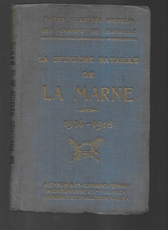 La deuxième bataille de la MARNE. Itinéraires Château Thierry- Soissons- Reims- Epernay. Un guide – un panorama- une histoire. In 12 reliure éditeur 127 pages illustrées sur papier couché. Michelin & Cie 1920, avec jaquette (état moyen de la jaquette.) La trouée de REVIGNY- Châlons-Vitry le François-Bar le Duc. Reliure éditeur 111 pages illustrées sur papier couché. Un guide – un panorama- une histoire Michelin & Cie 1918,