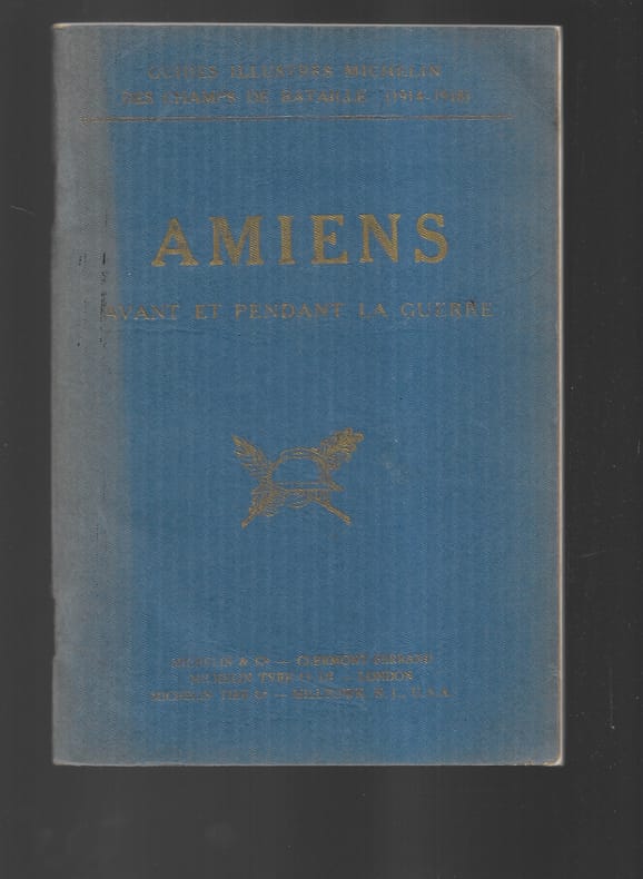 Michelin & Cie, Editeurs, collection "Guides illustrés Michelin des champs de bataille", Clermont-Ferrand, 1919. In-12, brochure agrafée sous jaquette, 55 pp. Origine et grands faits historiques - Amiens pendant la guerre - Visite de la ville - La cathédrale - Le musée - Le vieil Amiens - Table des matières.