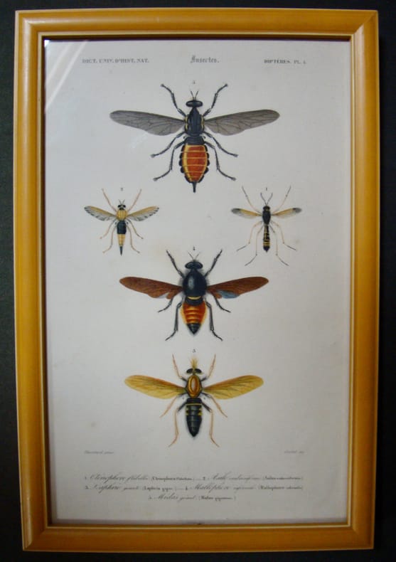 Authentique gravure extraite du Dictionnaire Universel d'Histoire Naturelle par Charles d'Orbigny (Paris, 1849). Cténophore flabellée;Asile; Laphrie; Mallophore et Midas. Dessin de Blanchard, gravé par Corbié. Encadré très bon Paris Dictionnaire Universel d’Histoire Naturelle 1849 26 x 18