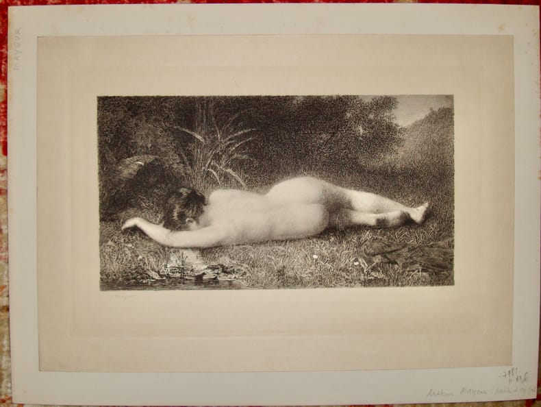 Très belle épreuve avant toute lettre, signée à la pointe en bas à gauche. D'après Henner. 16 x 25 cm. Marges 20 x 28,6 cm.