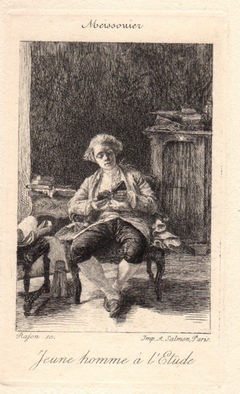 Très belle épreuve d'après Meissonier. en feuille Très bon Paris 1872 12,3 x 7,5 cm. Marges 26,2 x 18,4 cm.