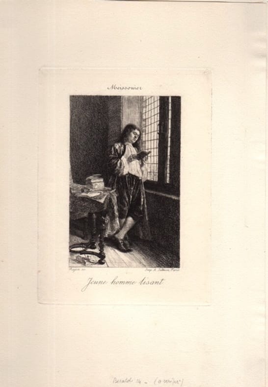 Très belle épreuve d'après Meissonier. 1872 16 x 1,7 cm. Marges 26,4 x 18,1 cm.