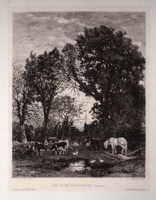 Belle épreuve sur Chine appliqué sur velin. Sanchez et Seydoux (ne mentionnent pas d'épreuve sur Chine) 1876-28. IFF 1-4. en feuille Paris Gazette des Beaux-Arts 1876 20,3 x 16,2 cm. Papier: 44,3 x 30,8 cm.