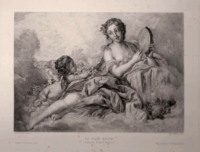 Belle épreuve sur velin. D'après Boucher. Sanchez et Seydoux 1890-17. Quelques rousseurs. en feuille Paris Gazette des Beaux-Arts 1890 17,3 x 23 cm. Papier 30,6 x 44 cm.