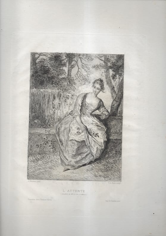 Belle épreuve sur velin. D'après Watteau. Sanchez et Seydoux 1881-10. IFF 3-5. en feuille Paris 1881