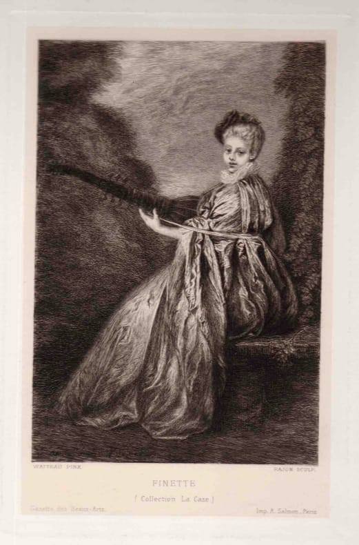 Belle épreuve sur Chine appliqué. D'après Watteau. Sanchez et Seydoux 1870-2. Gazette des Beaux-Arts 1870 20 x 13,2 cm.