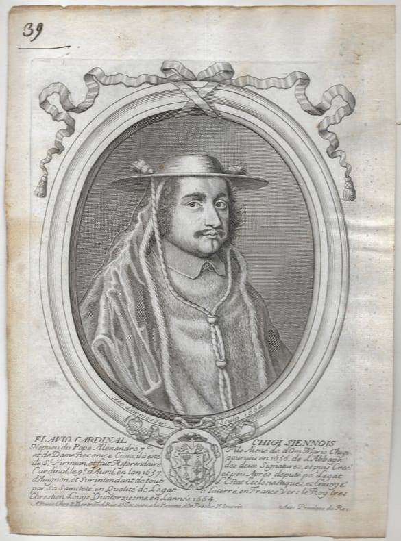 Seconde édition "revue et corrigée par le traducteur, et purgée de plus de fautes, et d'erreurs grossières, et obmissions considérables, qu'il n'y avoit de pages, en la première édition furtivement faite à Leyde". Cette relation signée des initiales "S.V.N.V." fut écrite par un membre de la suite du cardinal Chigi en ambassade à Paris en 1664. "Ce n'est pas un pamphlet, mais un compte-rendu de la situation de la France en 1664 : le roi et sa famille, administration bonne et prudente, forces militaires, économique, finances rétablies (longs détails sur la Chambre de Justice), les trois ministres, etc. Observation sérieuse" (Bourgeois & André). Bourgeois & André, 8789; Lelong, 30961.