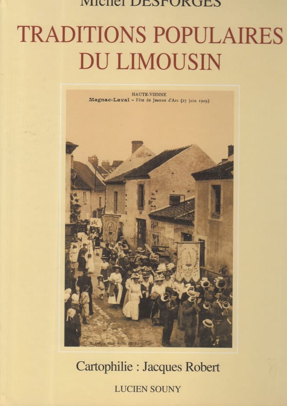 Limoges, Lucien Souny, 1998, Première Edition, in-4, cartonnage couv. photo en noir éd., 198 pp., papier glacé, très nb. reproductions en noir de cartes postales, Superbe iconographie à travers la reproduction de très nombreuses cartes postales ancienne. Plus de 250 cartes postales qui retrassent les fêtes, les traditions qui ont longtemps animé la vie limousine. Pas courant Très bon état