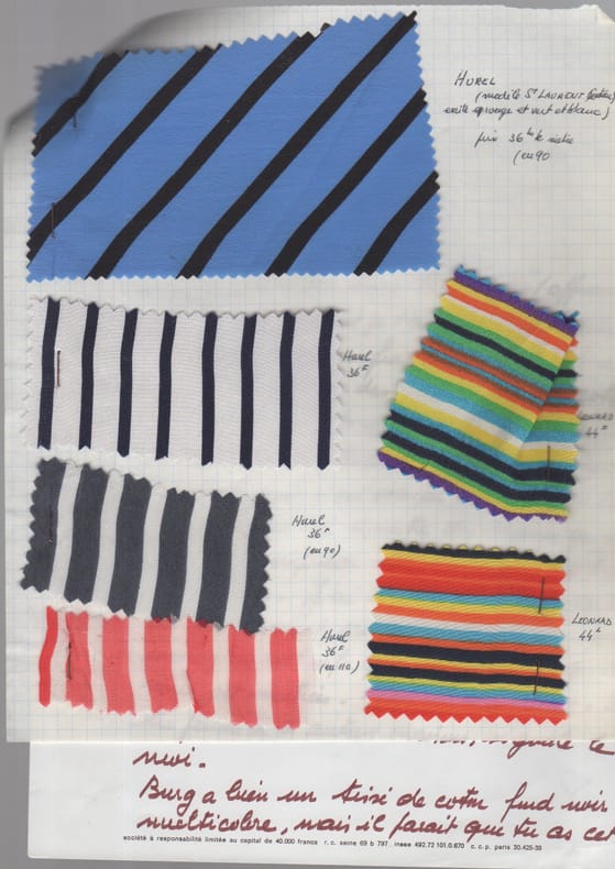 Petit dossier comprenant divers documents concernant le créateur de mode Bernard Perris : photos de mode, croquis, échantillons, catalogue de Haute couture Jean-Louis Scherrer, etc … Très bon s.n.