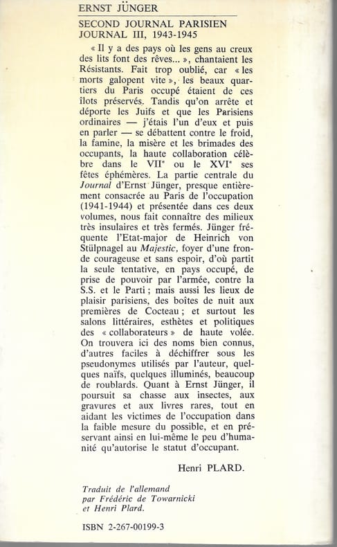 TRADUIT DE L'ALLEMAND / NOTA : Ernst Jünger (Heidelberg, 29 mars 1895 – Riedlingen, 17 février 1998) est un écrivain allemand. Classification Dewey : 830-Littératures des langues germaniques