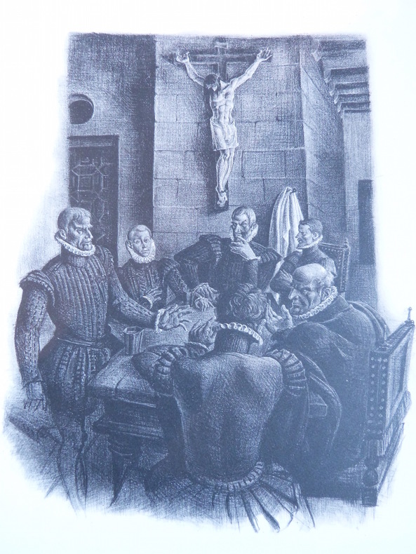 In-4, en feuilles sous couverture rempliée, chemise et étui noir de l'éditeur. Illustré de 7 lithographies en noir par le peintre espagnol Mariano Andreu (1888 - 1976). Tirage limité à 266 exemplaires, un des 230 sur vélin pur chiffon de Lana (N° 182). Première édition illustrée de cette pièce de théâtre qui fut représentée la première fois à Paris au théâtre Hébertot le 26 janvier 1948. Mariano Andreu fut chargé des costumes et de la scénographie pour la Comédie française. (quelques défauts sur la chemise et l'étui, piqûres sur les tranches, et en marge de quelques rares pages). // Quarto, loose leaves under folded cover, editor black folder and slipcase. Illustrated with 7 lithographs in black by spanish painter Mariano Andreu (1888 - 1976). Limited printing of 266 copies, one of the 230 on "vélin pur chiffon de Lana" (Nr 182). First illustrated edition of this theater play, first performed in Paris, Hebertot theater, on january 26th 1948. Mariano Andreu took care of costums et stage design of this play for the Comédie française theater. (some defects on folder and slipcase, spots on edges, and in margin of some rares pages).