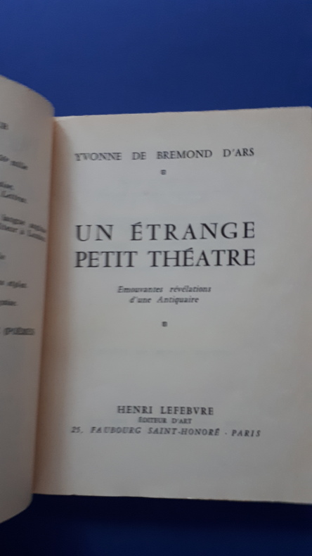 Yvonne Anne-Marie de Bremond d'Ars (1884-1976) est une antiquaire française, spécialisée dans le mobilier XVIIIe siècle, active à Paris au lendemain de la Première Guerre mondiale. Yvonne de Brémond d'Ars fut aussi une femme de lettres renommée. Sous son véritable nom, elle publia son Journal d'une Antiquaire, relatant en plusieurs tomes, les coulisses de son métier, s'adonnant avec enthousiasme à des descriptions détaillées sur les objets de son amour: les antiquités. Yvonne de Brémond d'Ars se met en scène aux prises avec des clients fantasques, auxquels elle vient le plus souvent en aide. Il s'agit, dans la plupart des cas, de gens faibles, que leur passion mène à la ruine.