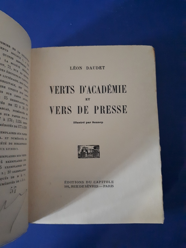 Paris Editions du Capitole 1930 Un volume in-12 broché, couverture blanche, 253 pages, illustrations par Sennep. Rares rousseurs,exemplaire numéroté (2280) sur Alfa, édition originale.