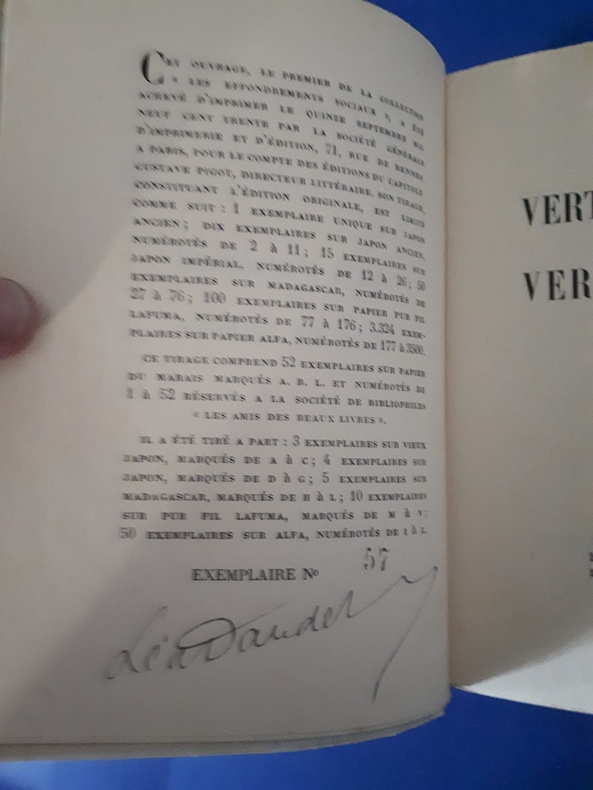 Un des cinquante exemplaires sur Madagascar. Tirage limité à 3324 exemplaires sur Alfa numérotés, après 100 sur Pur Fil, 50 sur Madagascar, 15 sur Japon impérial, 11 sur Japon ancien et quelques exemplaires Hors Commerce. Avec des illustrations en N & B hors-texte de Sennep.Couverture à rabats.