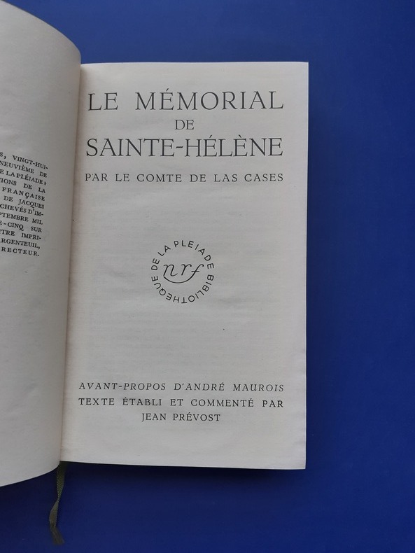 Première publication dans la collection de La Pléiade. Avant-propos d'André Maurois; Introduction, commentaire, index de Jean Prévost. Le Mémorial de Sainte-Hélène. Paris, N.r.f, La Pléiade, 1935 In-12° de xxxiv-949 pp., AA403'