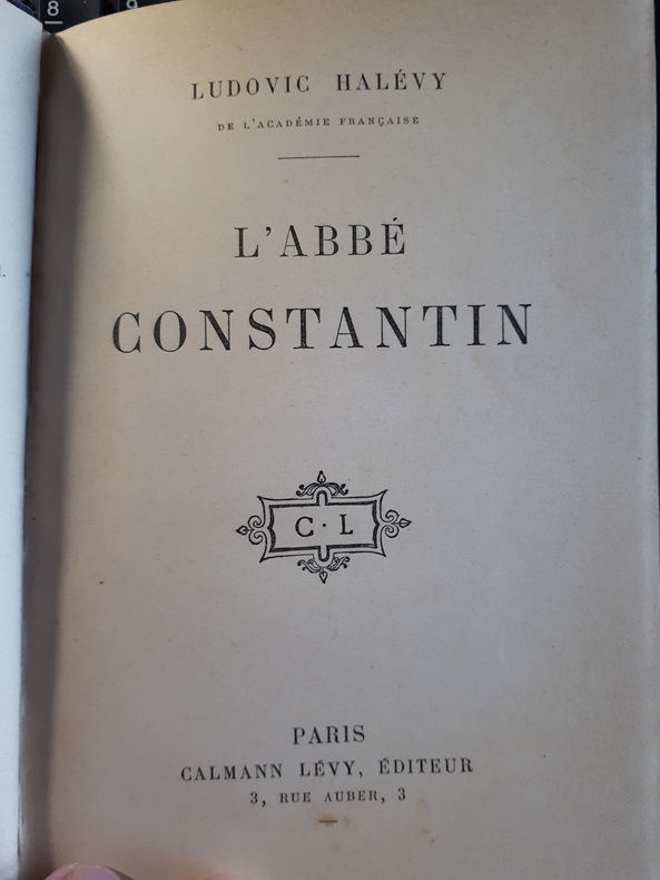 Lorsqu'il apprend que deux richissimes Américaines vont s'installer dans son village de Longueval, l'Abbé Constantin se sent bien attristé. Il s'inquiète pour les bonnes moeurs de sa paroisse. Ludovic Halévy confronte bourgeois et aristocrates en montrant leurs divergences de comportement. Paru pour la première fois en 1882, cet ouvrage a fait l'objet de plusieurs rééditions (entre 1882 et 1888) et de deux adaptations cinématographiques (l'une en 1925 par Julien Duvivier et l'autre par Jean-Paul Paulin en 1933) vol relié demi cuir, in8, 190x120, relié demi cuir, frottements, bel état int. 272pp Paris, Calmann Lévy, ss date vers 1910 ref/133