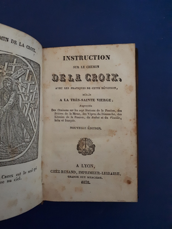 Relié plein cuir. Es. Illustré de nombreuses gravures en noir et blanc hors texte. Titre et motifs dorés sur le dos. Vierge Marie Augmentée des Oraisons sur les 7 Stations de la Passion, des Prières de la Messe et des Vêpres du Dimanche.