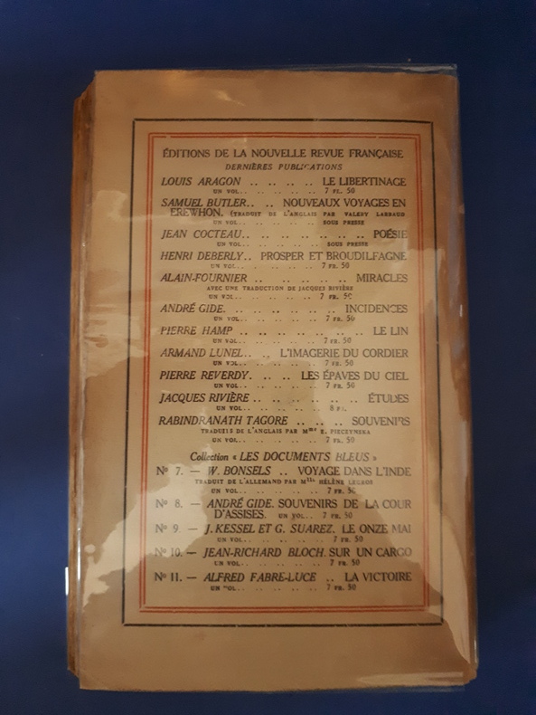 Editions de la nouvelle revue française. 1924 In-8° de 210 pp.,